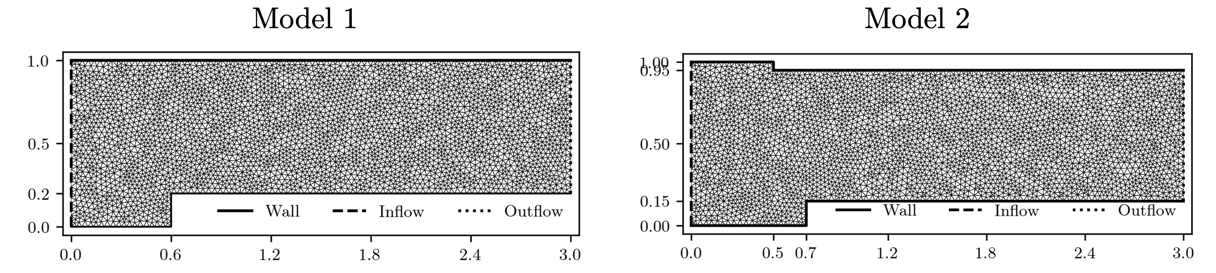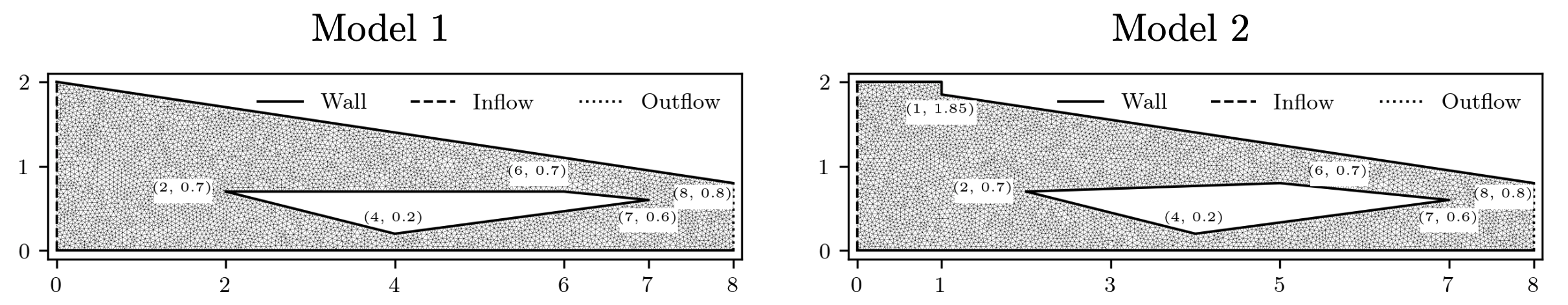 - Test data is generated from Model 1 and Model 2 for time interval [0, 6]s