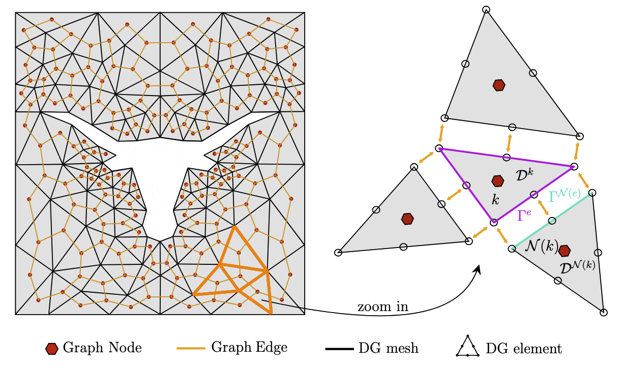 In this work, we developed a machine learning framework to solve shock-type PDEs, in particular, Compressible Euler equations. The core idea is motivated by the dual mesh between Discontinuous Galerkin (DG) method and Graph Neural Network (GNN).
